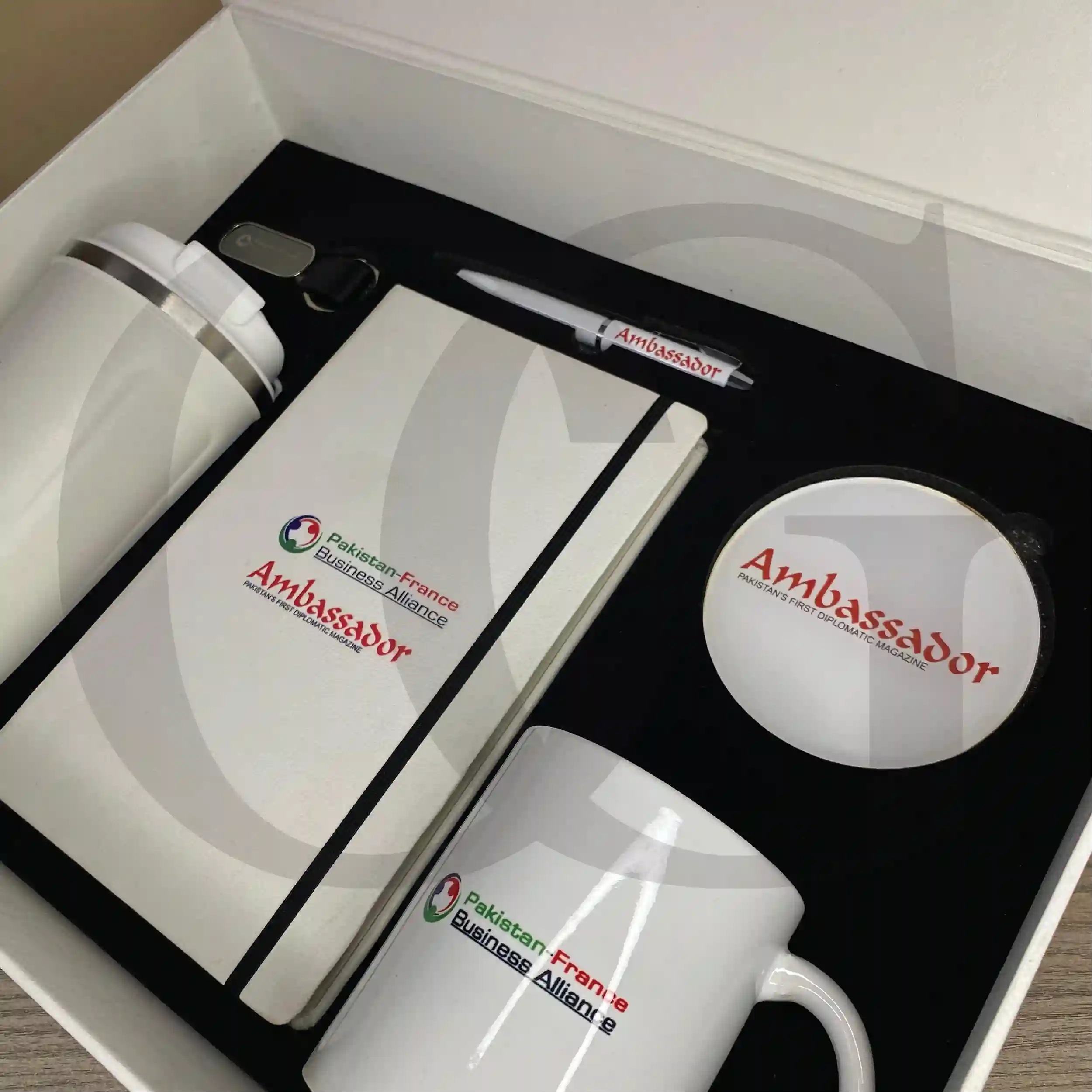 The set includes a coffee tumbler, tea coaster, executive diary, premium pen, ceramic mug, and a metal keychain.Q2: Can the Prime Corporate Collection be customized with a company logo?